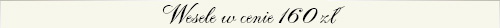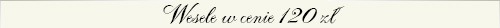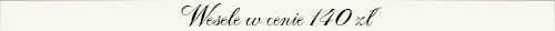 Pozostałe informacje Obsługa kelnerska w cenie menu Obrusy, serwetki w cenie menu Świeczniki, świeczki w cenie menu Materiał dekoracyjny na stoły w cenie menu Opięcie stołu głównego falbanami w cenie menu Przystrojenie krzeseł Państwa Młodych pokrowcami w cenie menu Kwiaty na stoły w wybranym kolorze w cenie menu Podana cena menu jest ceną z VAT Nie doliczamy żadnych dodatkowych opłat jak korkowe czy porcelanowe Napoje niegazowane podajemy w dzbankach Dzieci do lat 4 gratis Dzieci do lat 12 50% ceny * Uważasz, że 2,5 porcji mięs to za mało? Dodatkowa porcja mięs tylko 7 zł/os. ** Dwie porcje zakąsek nie wystarczą? Dodatkowa porcja zakąsek tylko 5 zł/os.
